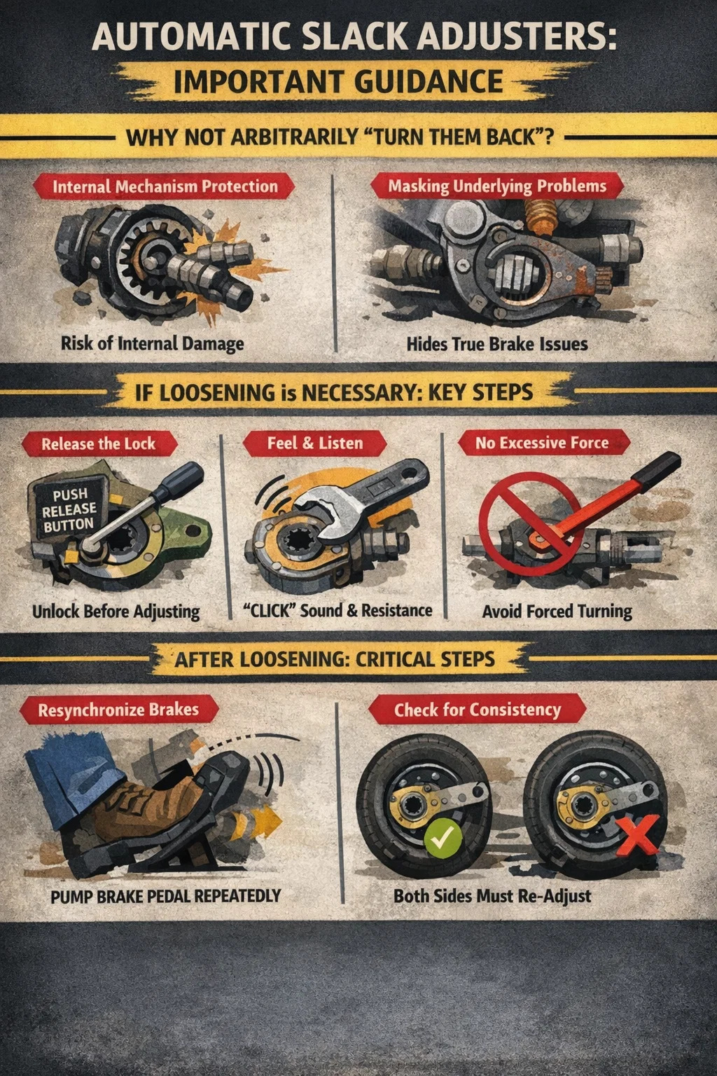 ↳ Маскування основних проблем: якщо зазор неправильний, зазвичай це пов’язано з зносом або несправністю гальмівного насоса, розподільного вала чи інших компонентів трансмісії. Послаблення вручну лікує лише симптом, а не причину, і реальна загроза безпеці залишається.