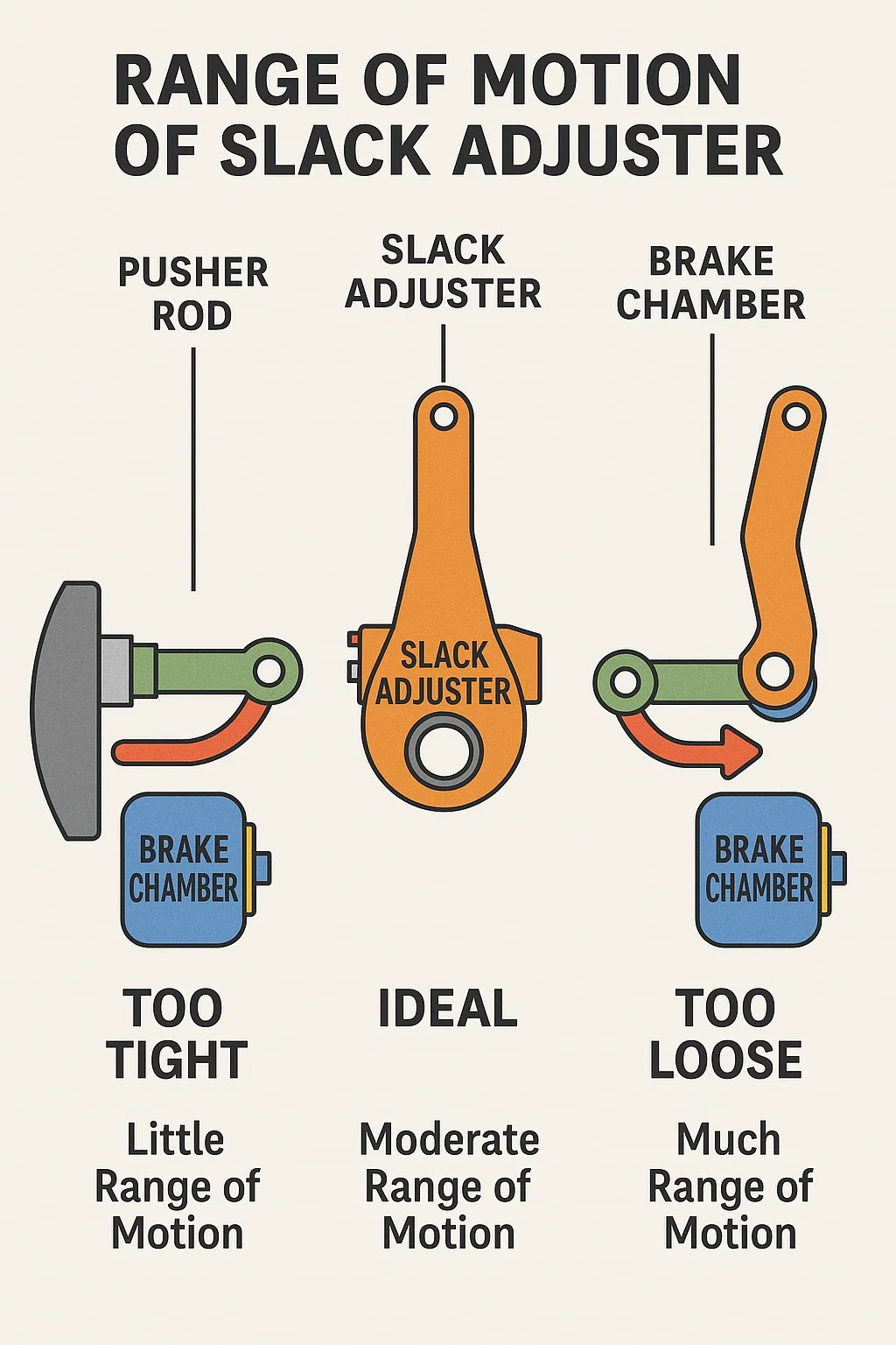 «Діапазон руху», або більш професійно, гальмівний хід, відноситься до відстані, яку переміщує регулятор слабини, коли тягне штовхач під час активації пневматичної гальмівної системи.