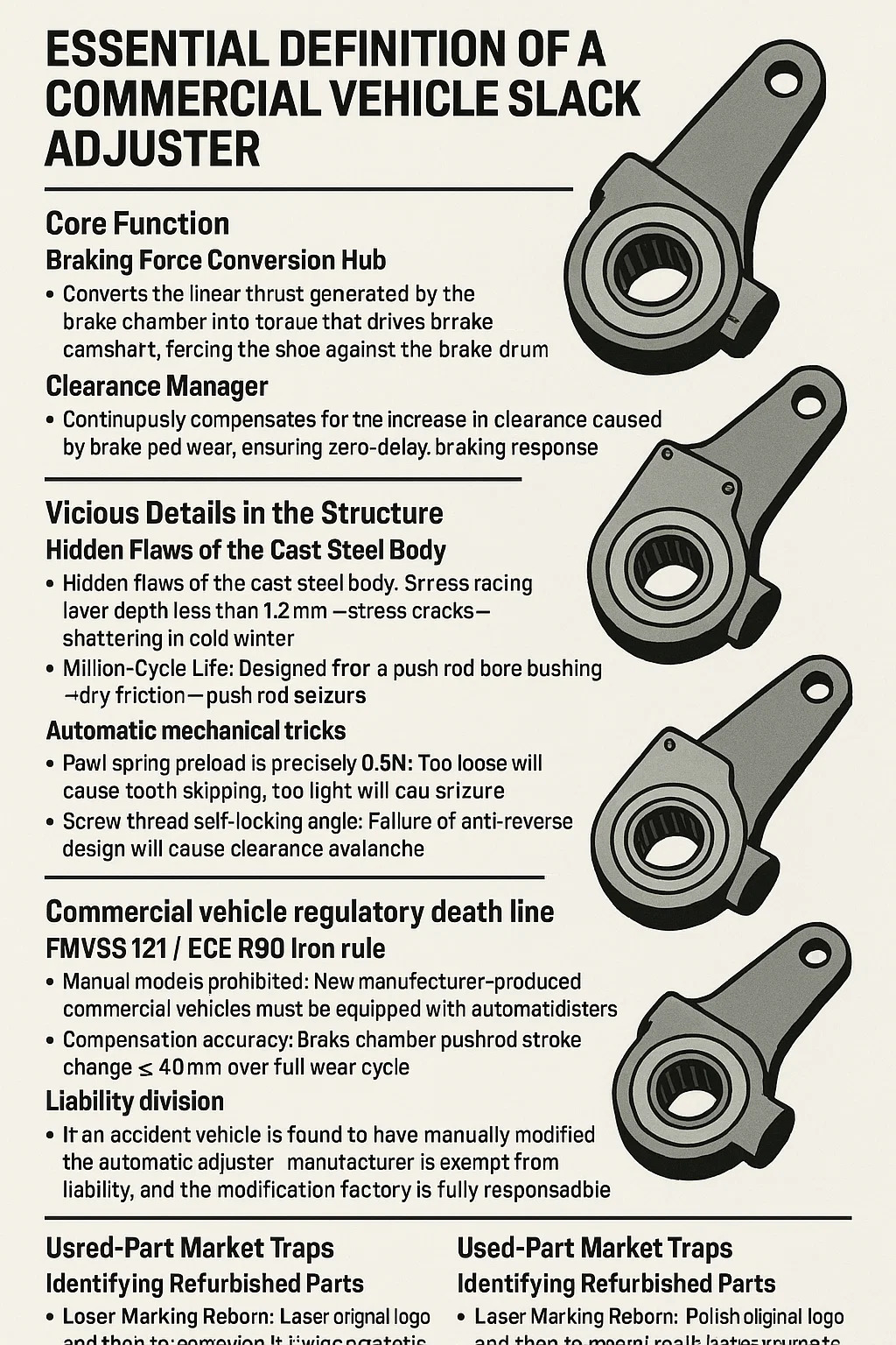 Концентратор перетворення гальмівної сили: перетворює лінійну тягу, створювану гальмівною камерою, у крутний момент, який приводить у рух гальмівний розподільний вал, притискаючи колодку до гальмівного барабана, створюючи тертя.